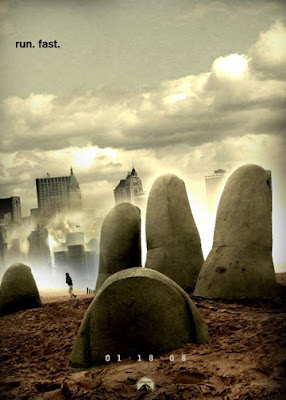 Neste cartaz, teoricamente representando a destruição de Nova York, encontramos uma mão enterrada.